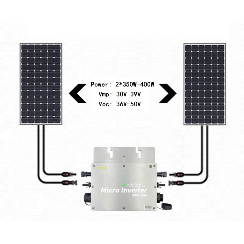 Y&H 800W netzgekoppelter Mikro-Wechselrichter wasserdicht IP65 MPPT DC30-42V PV Montaje AC180-260V Ausgang para módulo solar 30V 36V