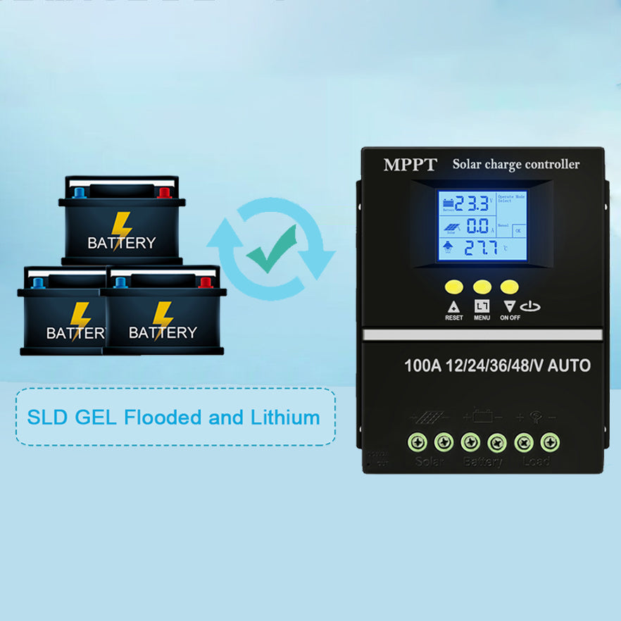 This solar controller is versatile and compatible with various battery types, including Sealed, GEL, Flooded, and LiFePO4 batteries, making it suitable for diverse applications.
